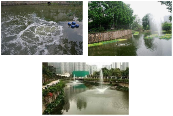 主要适用于整治后城市水体的水质保持,具有水体复氧功能,可有效提升局部水体的溶解氧水平,并加大区域水体流动性。主要采用跌水、喷泉、射流,以及其他各类曝气形式有效提升水体的溶解氧水平;通过合理设计,实现人工增氧的同时,辅助提升水体流动性能;射流和喷泉的水柱喷射高度不宜超过1米,否则容易形成气溶胶或水雾,对周边环境造成一定的影响。