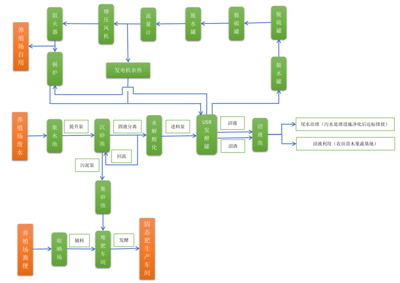 我公司目前参与建设与运营的项目主要采用生物发酵方法对畜禽粪便进行处理。工艺流程如下: