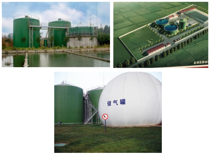 厌氧堆肥按发酵温度可分为常温发酵(自然发酵)、中温发酵和高温发酵。厌氧堆肥又称沼气干发酵,其原料中总固体含量在20%左右。根据畜禽粪便中有机物含量高的特点,在一定的水分、温度(35℃~55℃)和厌氧条件下,通过各类微生物的分解代谢,最终形成甲烷和二氧化碳等可燃性混合气体(沼气),同时杀灭粪水中大肠杆菌、蠕虫卵等。沼气是清洁能源,可作为燃料用于家庭生活,养殖场大量沼气也可进行发电并网;沼渣沼液中含有氮、磷等成分,可作为肥料用于农业生产、也可用于养鱼、作物浸种等,沼气发酵是我国目前使用较广泛的粪便处理方法之一。